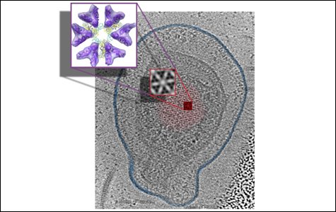"The spacing between those rings explains the hexagonal lattice we see with ECT," says Briegel. "For the first time we have a very convincing model of how this whole receptor array is put together."